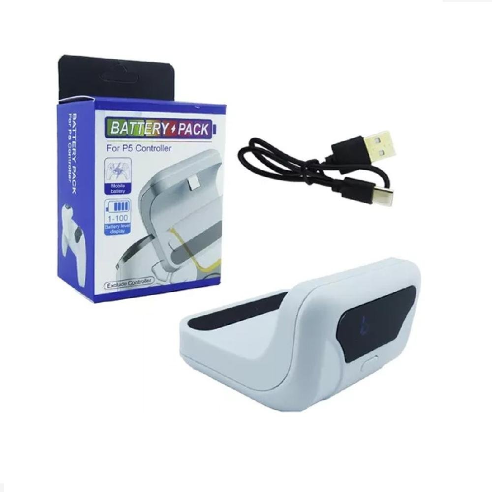 Batería externa SND-2033 para joystick de PlayStation 5. Con pantalla LED que indica el nivel de carga y capacidad de recarga a través de USB Type-C, esta batería es perfecta para sesiones de juego prolongadas. Compacta y eficiente, asegura que nunca te quedes sin energía mientras juegas. Producto en caja.